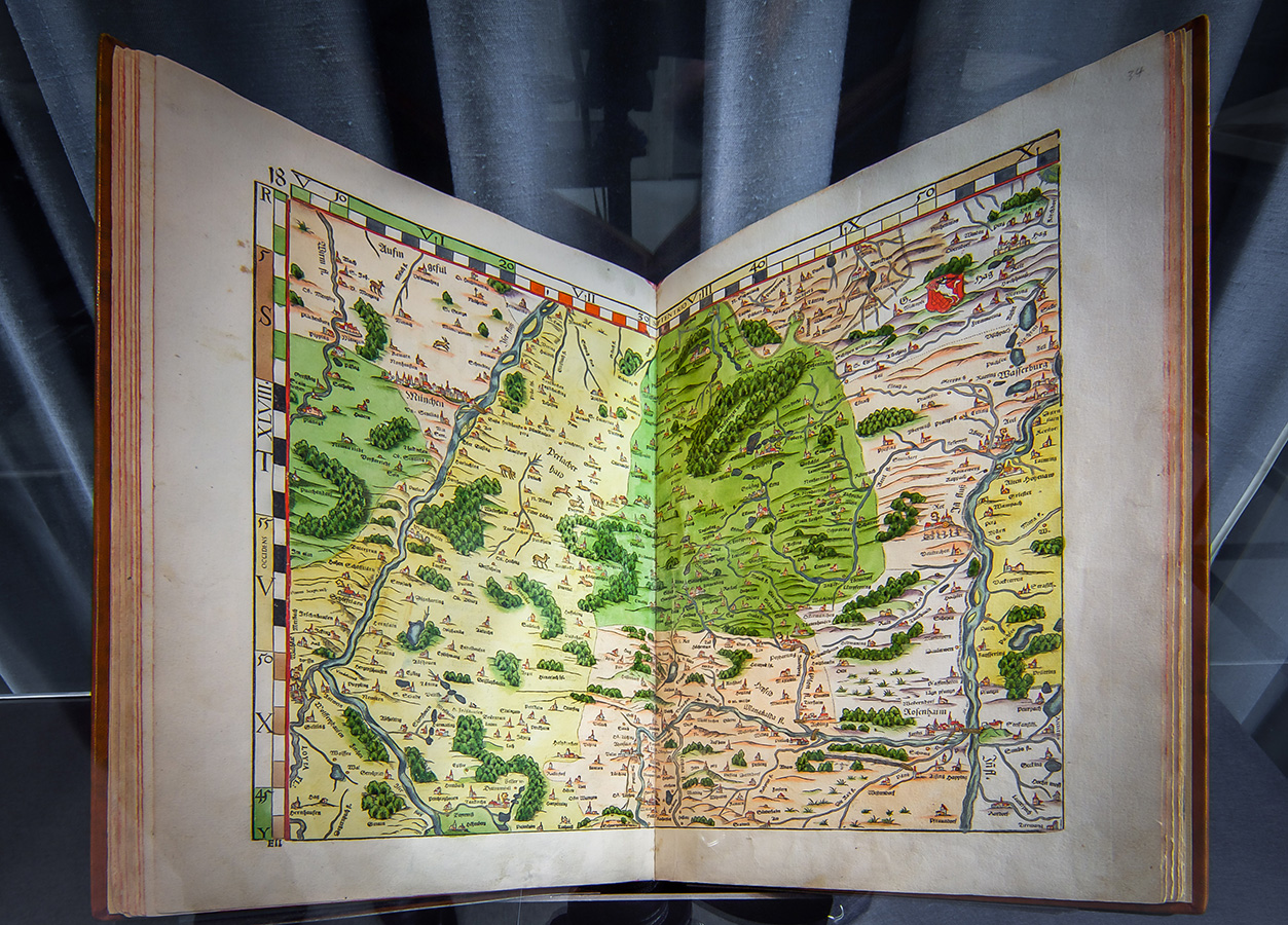 Die Ausstellung der Bayrischen Vermessungsverwaltung in Zusammenarbeit mit der Bayrischen Staatsbibliothek erinnert an Apians Pioniertat und zeigt, wie es danach weiterging: vom “Topographischen Atlas des Königreiches Bayern“ bis zum BayernAtlas.